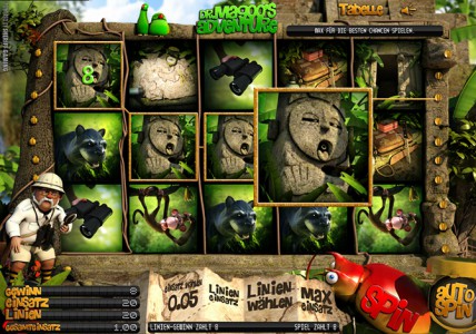 Doch heißt dies nicht, dass die restlichen Gewinne zu verachten wären. Nein bereits ab drei Statuensymbole bekommst du deinen Einsatz vierfach wieder. Und die Statue ist das wirklich schwächste Gewinnsymbol. Daneben gibt es noch den Puma, das Reisegepäck, die Landkarte, den Affen und das Fernglas. Auch diese Gewinnsymbole sorgen für eine ansehnliche Auszahlung deines Einsatzes in diesem online Slot von Merkur.
