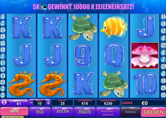 Bei Great Blue handelt es sich um einen 5 Walzen Spielautomaten, auf denen Du bis zu 25 Gewinnlinien aktivieren kannst! Das solltest Du auch unbedingt tun, damit Dir auch keiner der tollen Gewinne in den unendlichen Weiten des Meeres verloren geht. Zudem stehen Dir einige weitere Features bei Deiner Reise durch die Unterwasserwelt zur Seite, die Dir das Gewinnen immens erleichtern werden!