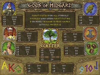 Eigentlich gibt es in Gods of Midgard zwei Sondersymbole. Oder besser gesagt es handelt sich um ein Symbol mit mehreren Funktionen. Die Rede ist vom Scatter und dem Wild, beide sind nämlich der Lebensbaum. Das heißt wenn der Baum einmal oder zweimal oder auch öfters auftaucht, dann verhilft er dir mit seiner Jokerfunktion wie du es auch sonst gewohnt bist zu leichteren Gewinnen.
