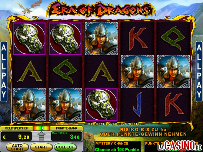 Wie Du sicherlich unschwer erkannt hast handelt es sich beim Era of Dragons das Novoline Spiel, um einen 5 Walzen Slot mit 10 Gewinnlinien auf 3 Ebenen. Wer den Kampf gegen die Ungeheuer aufnehmen möchte, der sollte unbedingt mit allen Paylines spielen, denn nur so kannst Du sicher gehen, dass dir kein Gewinn verloren geht.