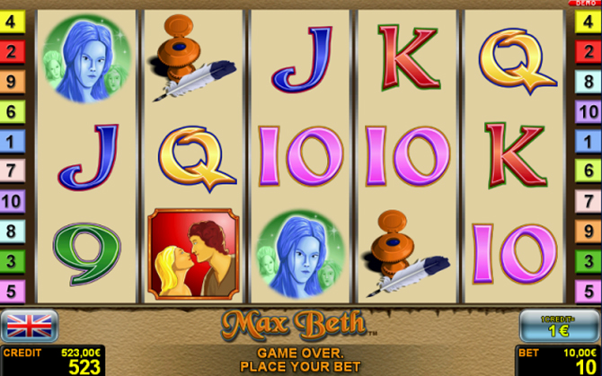 Max Beth ist ein Novoline Slot und hat damit wirst du natürlich auf jeden Fall auch die Risikofunktion finden. Diese ist nicht umsonst so beliebt bei den Spielern, denn schließlich ermöglicht sie kleine Gewinne mehrfach zu verdoppeln und damit so richtig abzuräumen. Abräumen kannst du aber auch wenn die Figuren aus den Dramen von Shakespeare auftauchen. Denn dann starten 5 Freispiele. Das ist zwar nicht so viele wie in anderen Novoline Spielautomaten, dafür aber gibt es auch fünffache Gewinne. Und damit sieht die Sache schon ganz anders aus.